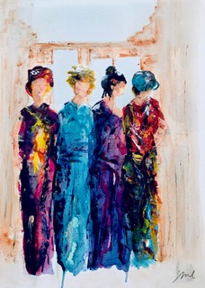 Leinwände, Papierarbeiten oder Drucke und schnelle Skizzen entstehen mit Materialien wie Aquarell- und Acrylfarben, Acrylmarker, Tinte, Graphit und Kreide. Abstrakt oder gegenständlich, Hauptsache die Strukturen und die Dynamik stimmt.